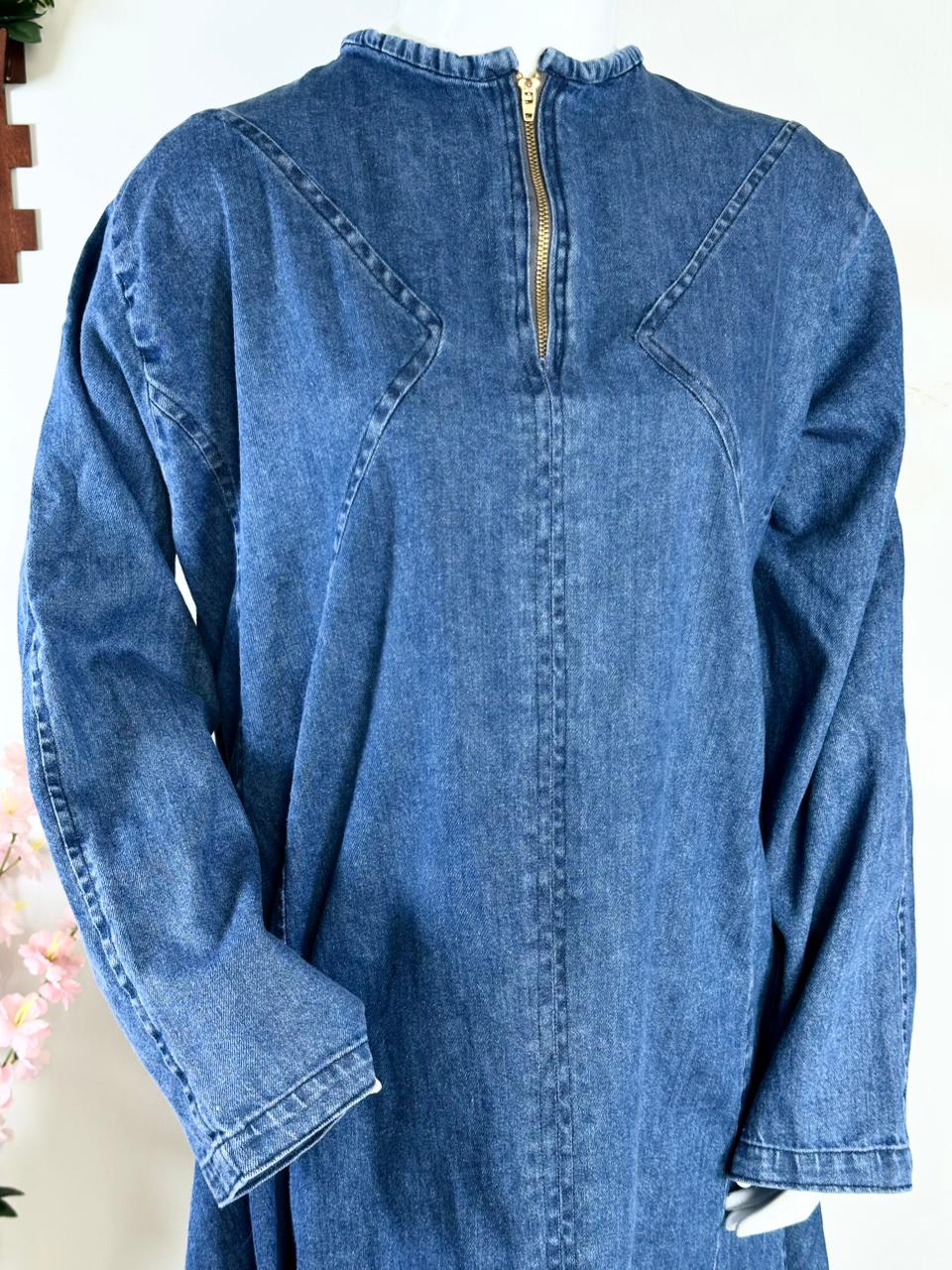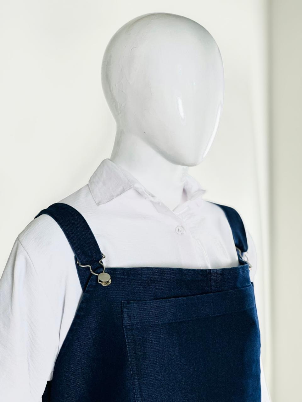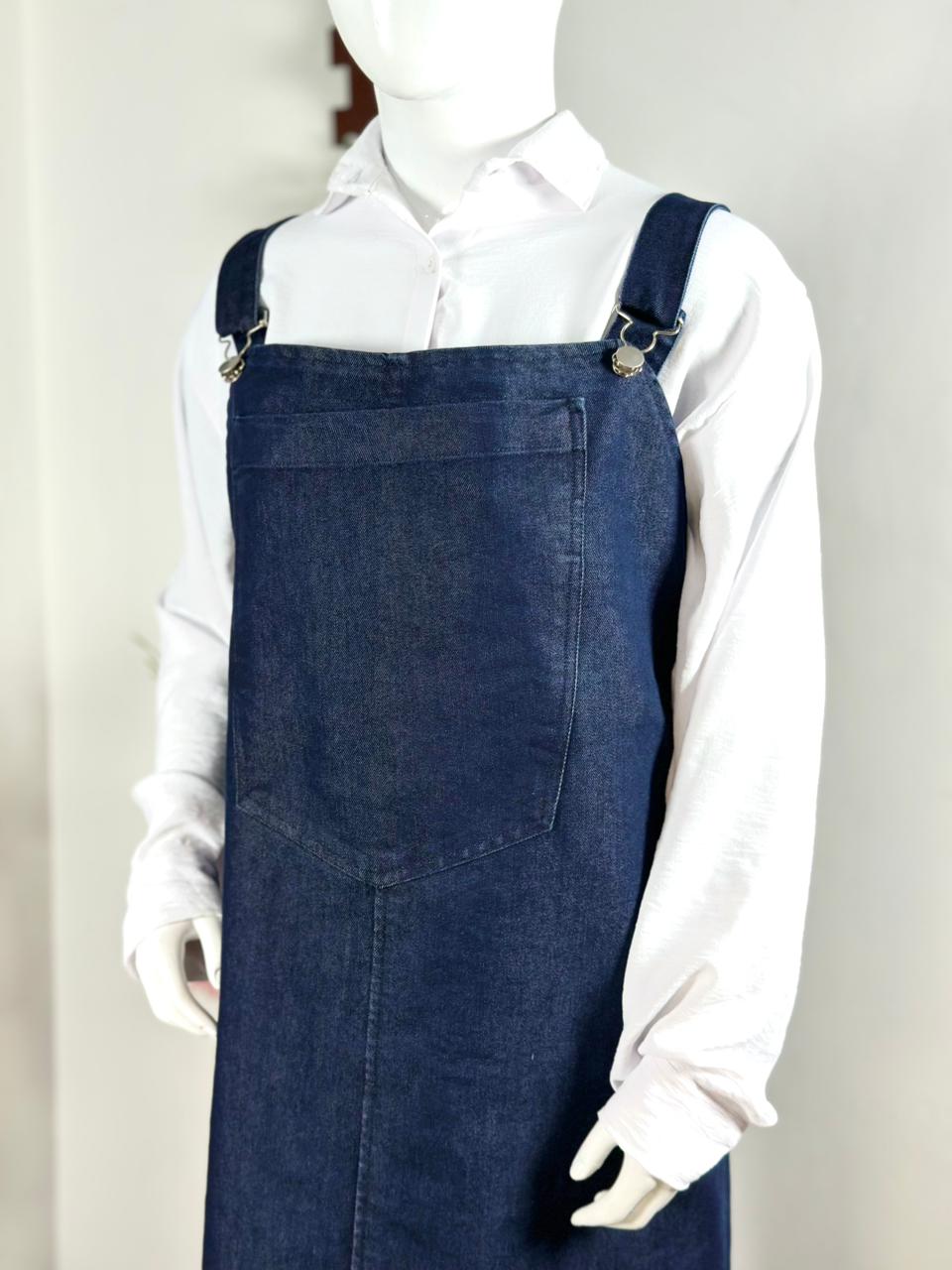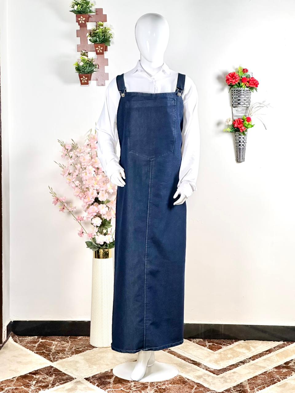 “Elevate your everyday style with our Denim Grace Overall Maxi — a chic, modest and ultra-comfortable piece designed for effortless elegance. Crafted in premium dark-wash denim, this long overall dress features adjustable shoulder straps and a flattering straight fall that suits every body type. Pair it with any shirt for a clean, classy and modern look. Perfect for casual outings, workwear or everyday chic vibes.”